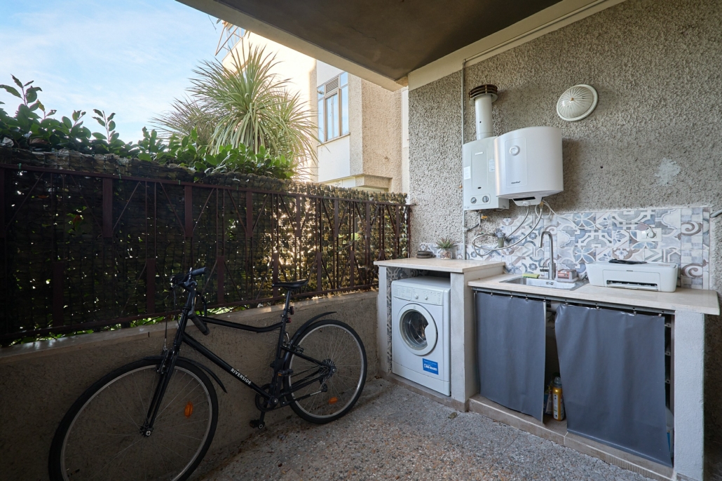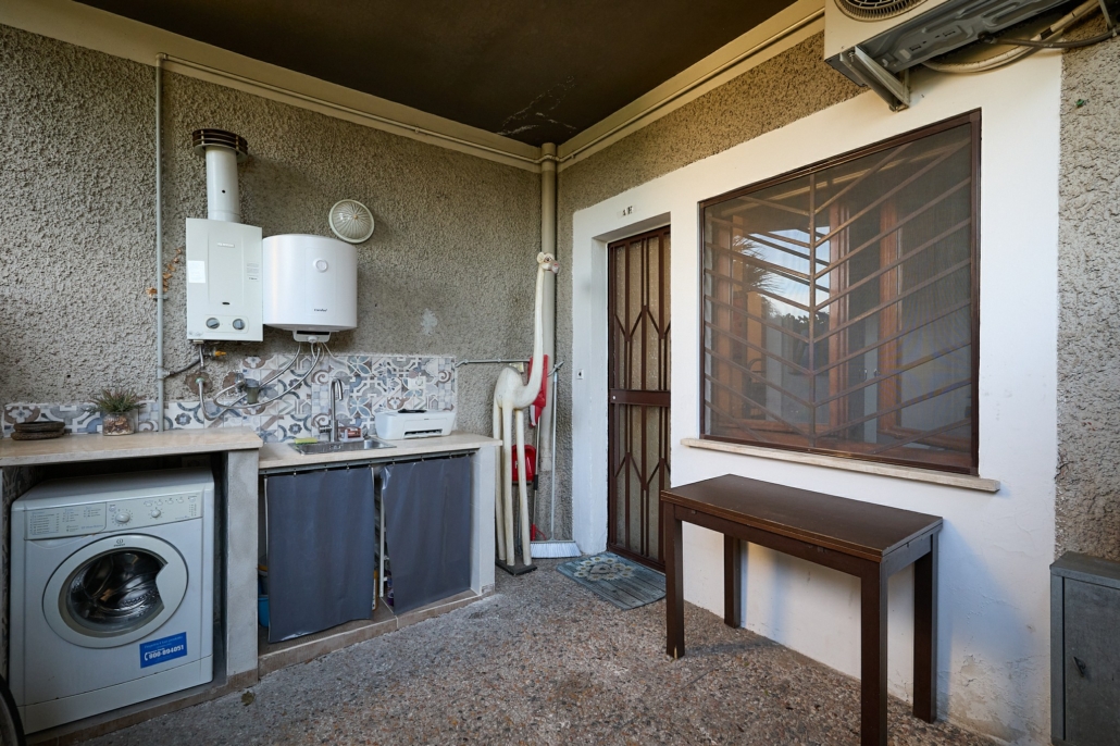La corte esterna pavimentata è perfetta per pranzi all’aperto, zona relax o area lavanderia già attrezzata.