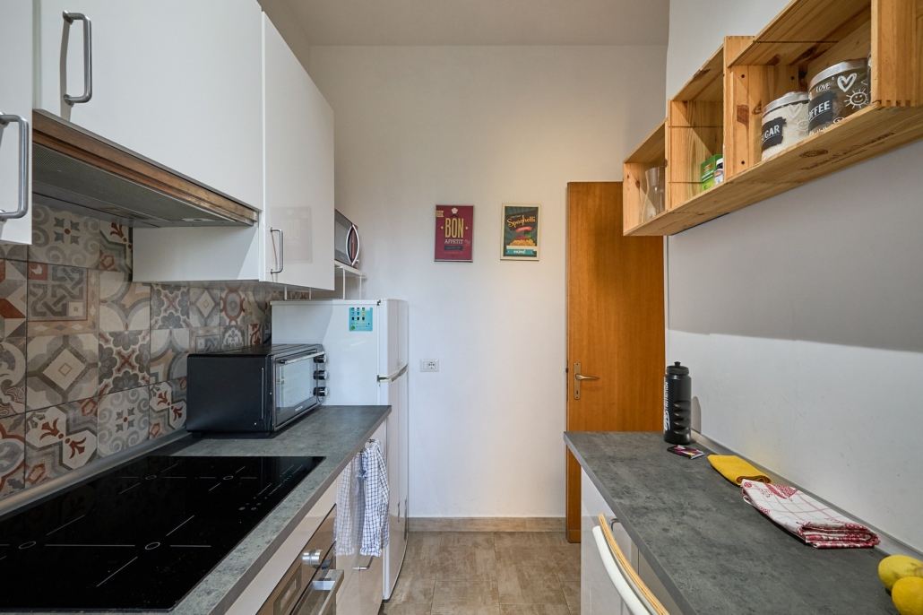 L’appartamento gode di una distribuzione interna intelligente, con ingresso, ambiente unico facilmente arredabile, cucinotto moderno e bagno ristrutturato con doccia.